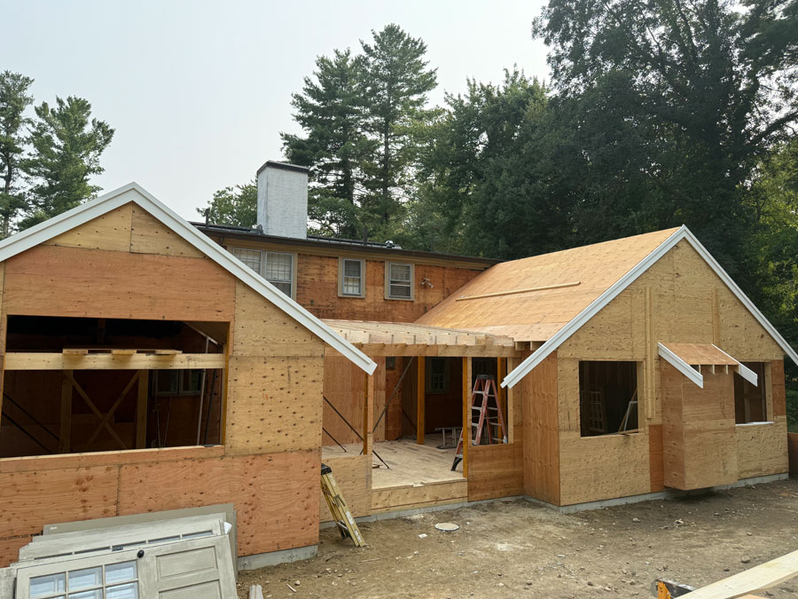 J. McSharry & Sons managed the project from the ground up, beginning with excavation and foundation work before moving into full framing and build-out. The new addition nearly doubled the home’s square footage and seamlessly integrates with the original structure. Inside, the expanded layout created an open, light-filled kitchen and living area, a practical mudroom, a full bathroom, and additional flexible living space designed to adapt as the family’s needs evolve.